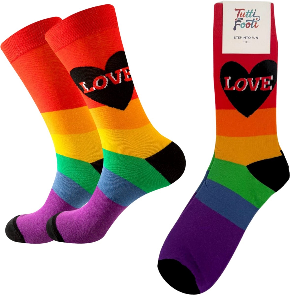 De set bestaat uit drie unieke sokkenparen, elk met een opvallend ontwerp: van bonte stippen tot krachtige regenboogstrepen en een hart met het woord LOVE. De sokken zijn verpakt in een stevige geschenkdoos met vrolijk design, waardoor dit een perfect cadeau is voor jezelf of iemand anders.