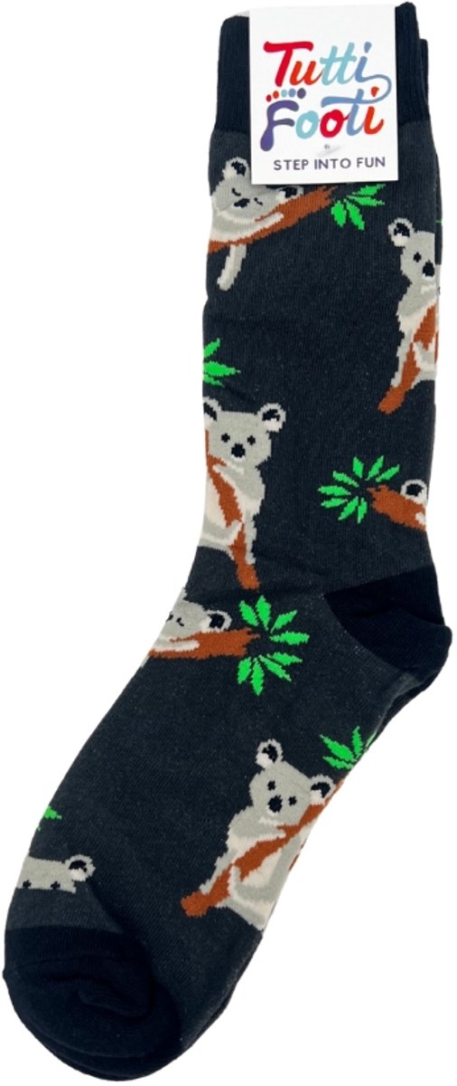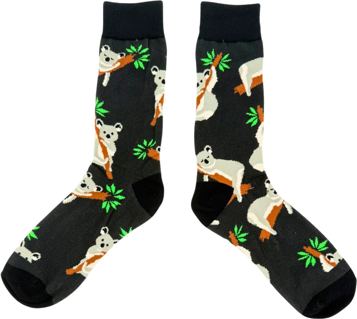 Deze sokken met koala’s brengen een stukje Australië naar je garderobe. De schattige koala’s, bekend om hun liefde voor eucalyptus, maken dit ontwerp extra bijzonder. Perfect om te dragen in je dagelijkse schoenen of om cadeau te doen aan iemand die dol is op dieren.