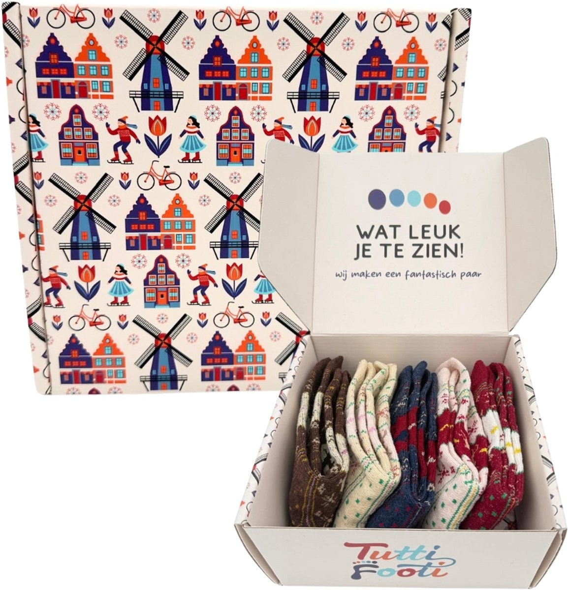 Deze set van Tutti Footi is de perfecte toevoeging aan je wintergarderobe of als geschenk voor een geliefde, de set wordt geleverd in een stijlvolle opbergdoos met een Nederlands winterdesign – perfect om cadeau te geven. De sfeervolle designs en comfortabele pasvorm maken ze ideaal voor zowel binnen als buiten. Trek ze aan voor een gezellig avondje thuis, of draag ze tijdens een winterwandeling. Waar je ook gaat, deze sokken zullen zeker opvallen en de feestelijke sfeer verhogen!