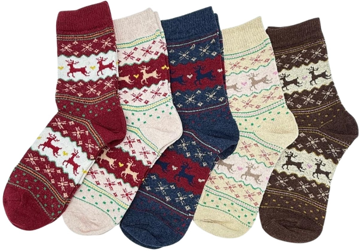 🎄 Set van 5 paar kerstsokken met schattige rendier- en winterpatronen