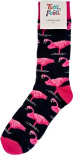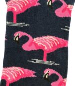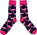 Laat je voeten opvallen met deze vrolijke flamingo sokken in zwart-roze kleurencombinatie. Met speelse roze flamingo’s op een donkere achtergrond zijn deze sokken een echte blikvanger – perfect voor wie van kleur en karakter houdt.