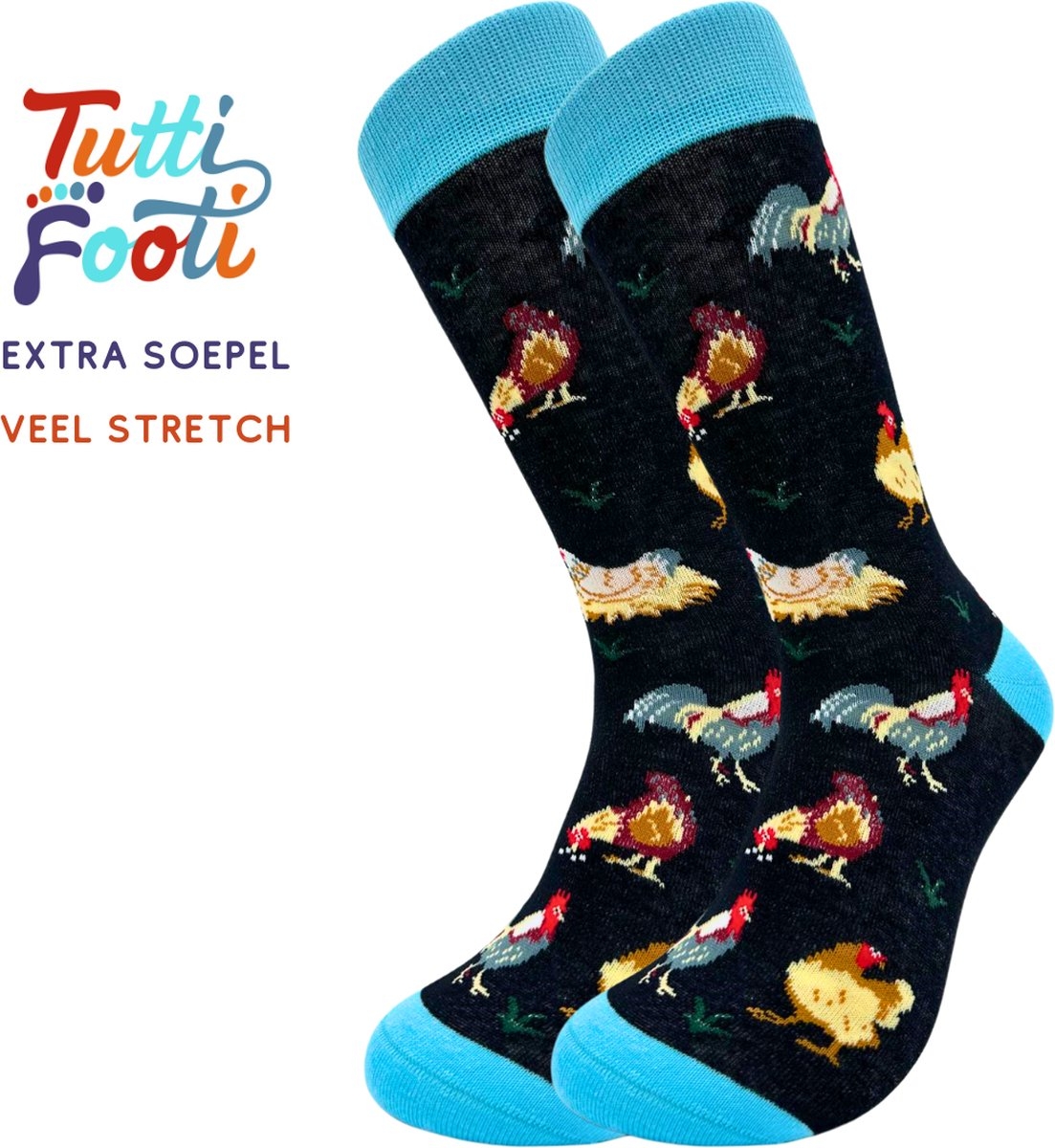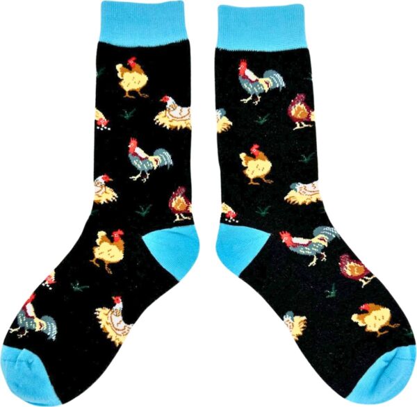 Breng wat landelijke charme in je outfit met deze vrolijke sokken met een design van kippen en hanen. Perfect voor dierenliefhebbers en iedereen die unieke sokken wensen.