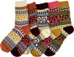 Maak je klaar voor knusse winterdagen met deze set van 5 paar warme Nordic sokken in vintage stijl. Met prachtige patronen, hartjes en een comfortabele pasvorm zijn deze sokken perfect om thuis te dragen of je winteroutfits compleet te maken. Geïnspireerd door het Hygge-gevoel, bieden ze warmte en stijl in één.